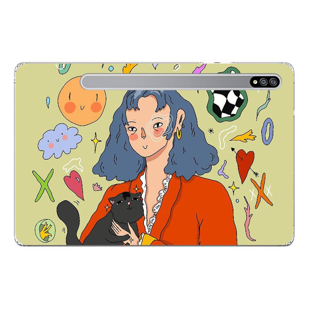 Dame mit Katze Samsung Galaxy Tab S7 Plus Silikon Hülle● Sehr robust & langlebig