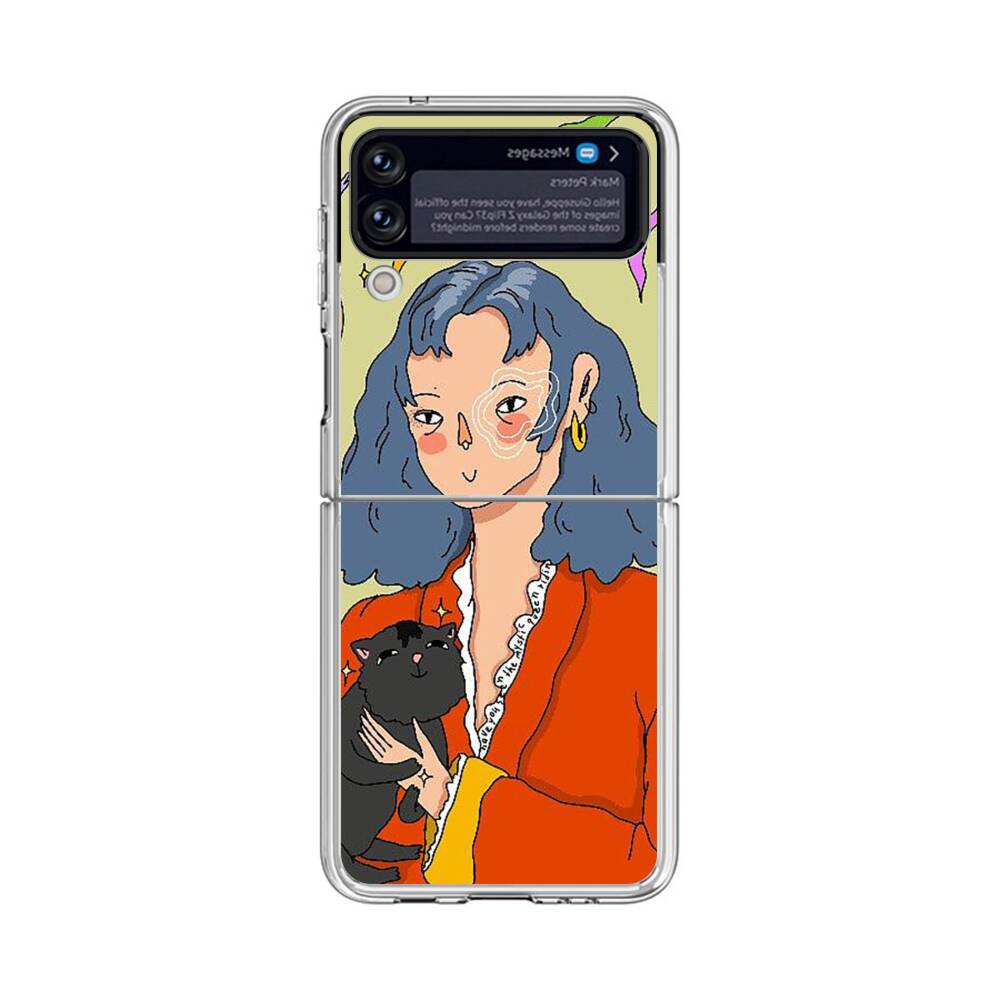 Dame mit Katze Samsung Galaxy Z Flip 4 Silikon Hülle● Sehr robust & langlebig