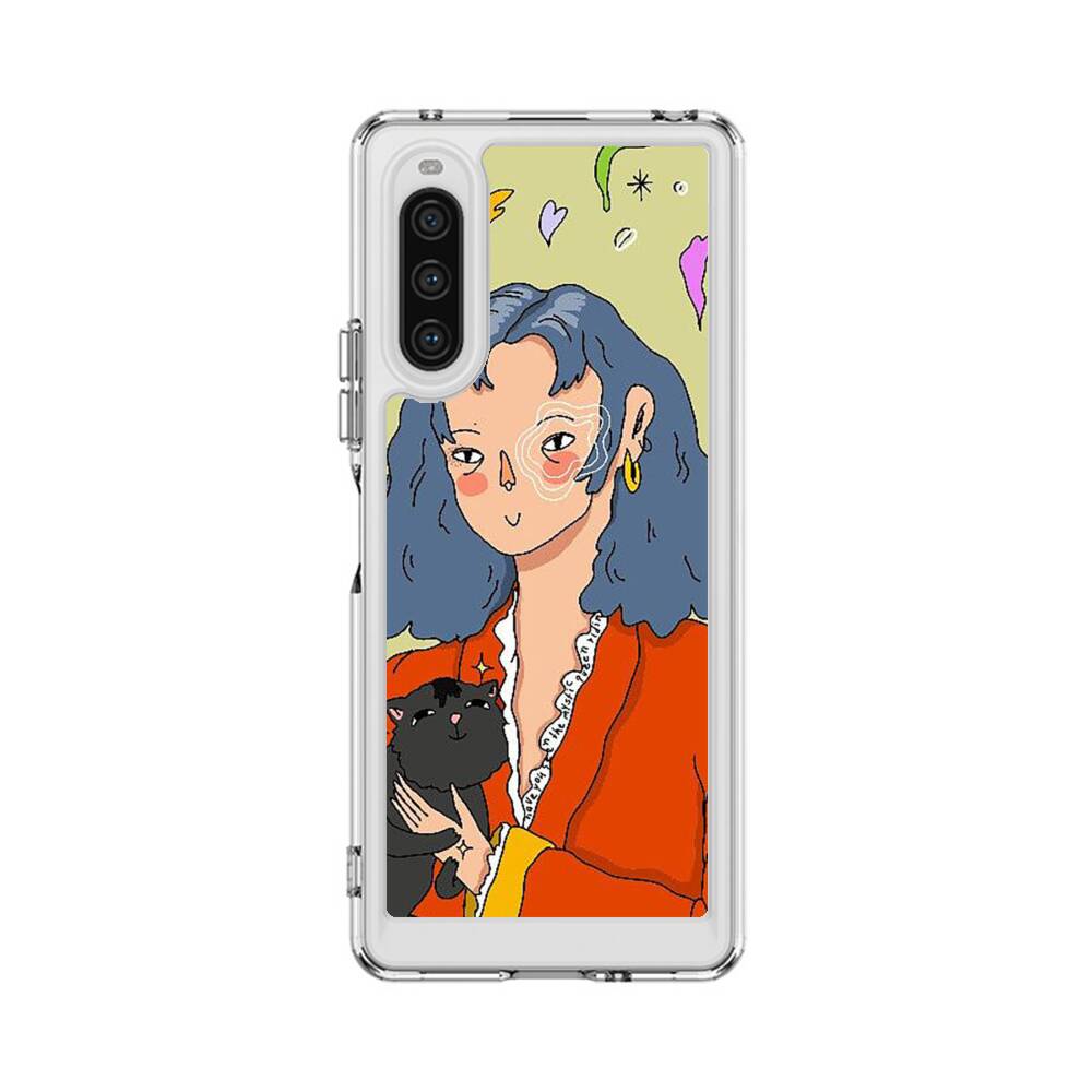 Dame mit Katze Sony Xperia 10 V Silikon Hülle● Sehr robust & langlebig