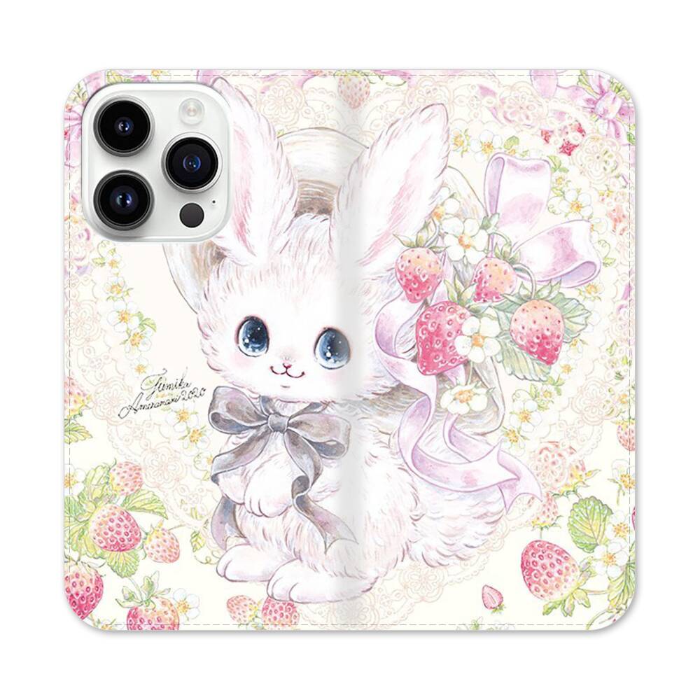 Kawaii Bunny mit Erdbeeren Apple iPhone 14 Pro Flip Case● Seitlich klappbar