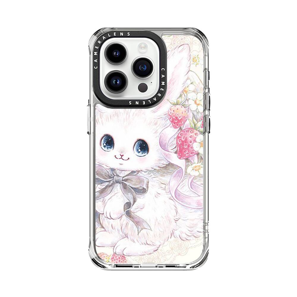 Kawaii Bunny mit Erdbeeren Apple iPhone 14 Pro Silikon Hülle● Sehr robust & langlebig