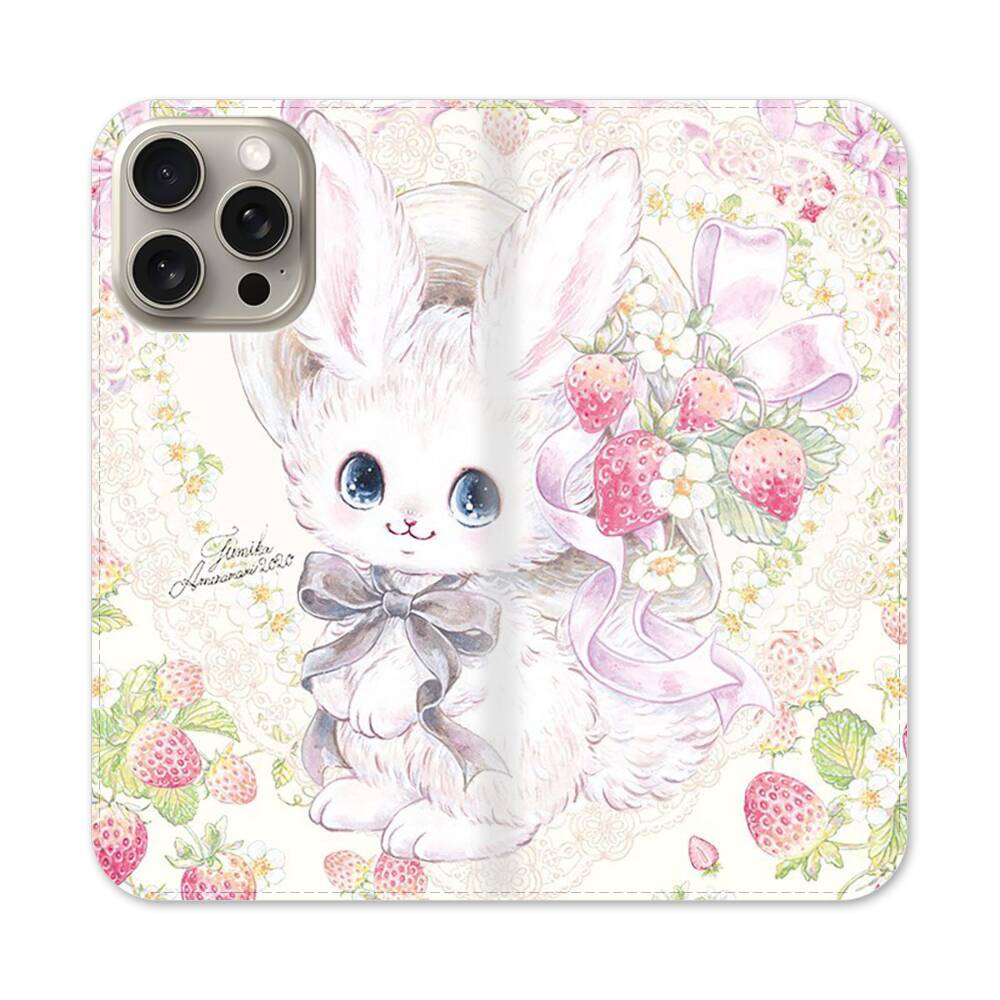 Kawaii Bunny mit Erdbeeren Apple iPhone 15 Pro Max Flip Case● Seitlich klappbar