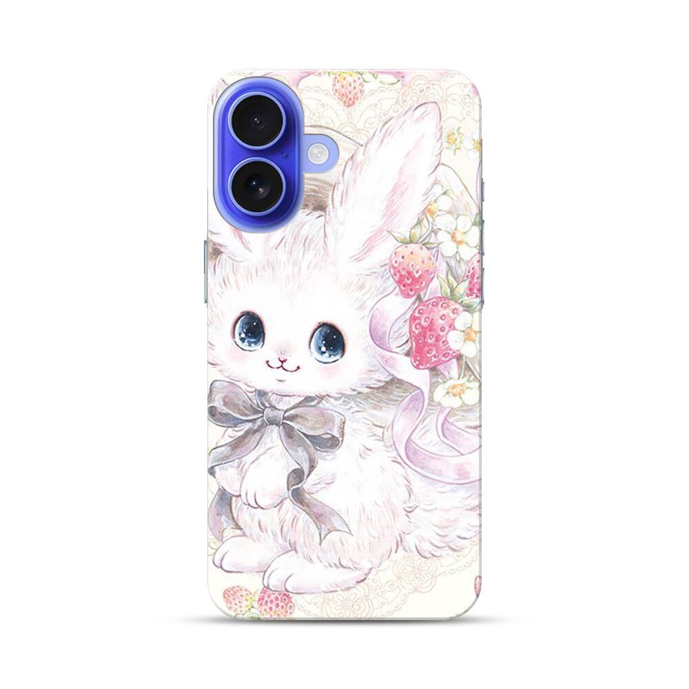 Kawaii Bunny mit Erdbeeren Apple iPhone 16 Hülle● Rundum bedruckbar