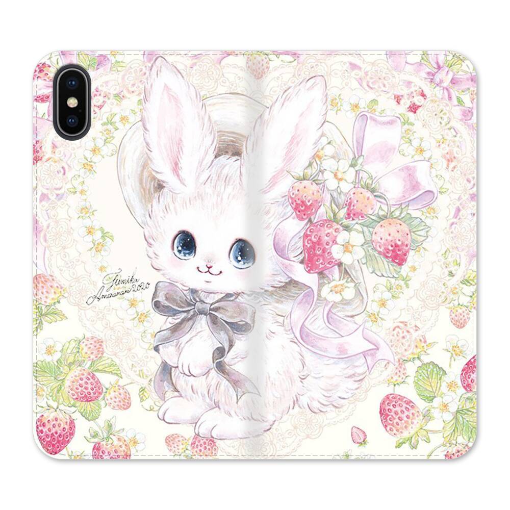 Kawaii Bunny mit Erdbeeren iPhone XS Wallet Leder Hülle● Seitlich klappbar