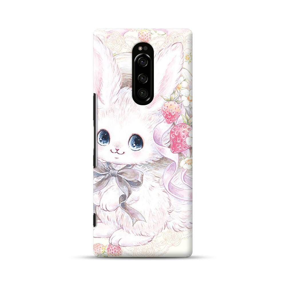 Kawaii Bunny mit Erdbeeren Sony Xperia 1 Hülle● Rundum bedruckbar