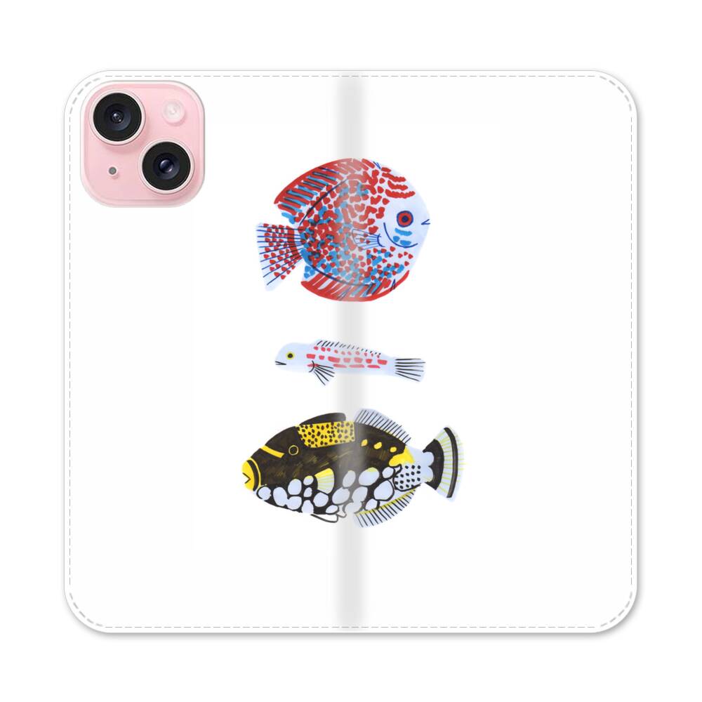 Moderne Bunte Fische Apple iPhone 15 Flip Case● Seitlich klappbar