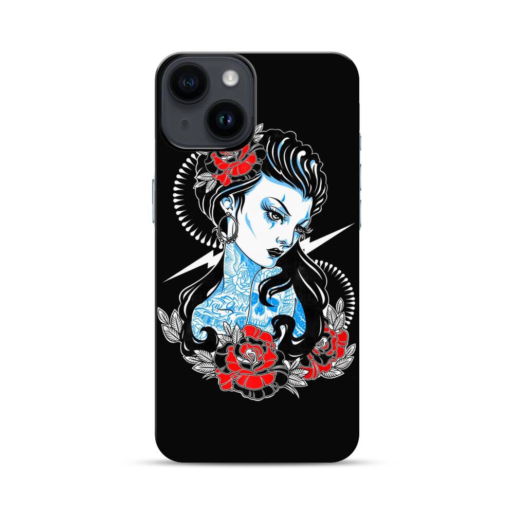 Klassisches Tattoo Mädchen Apple iPhone 14 Hybrid Case● Rundum bedruckbar