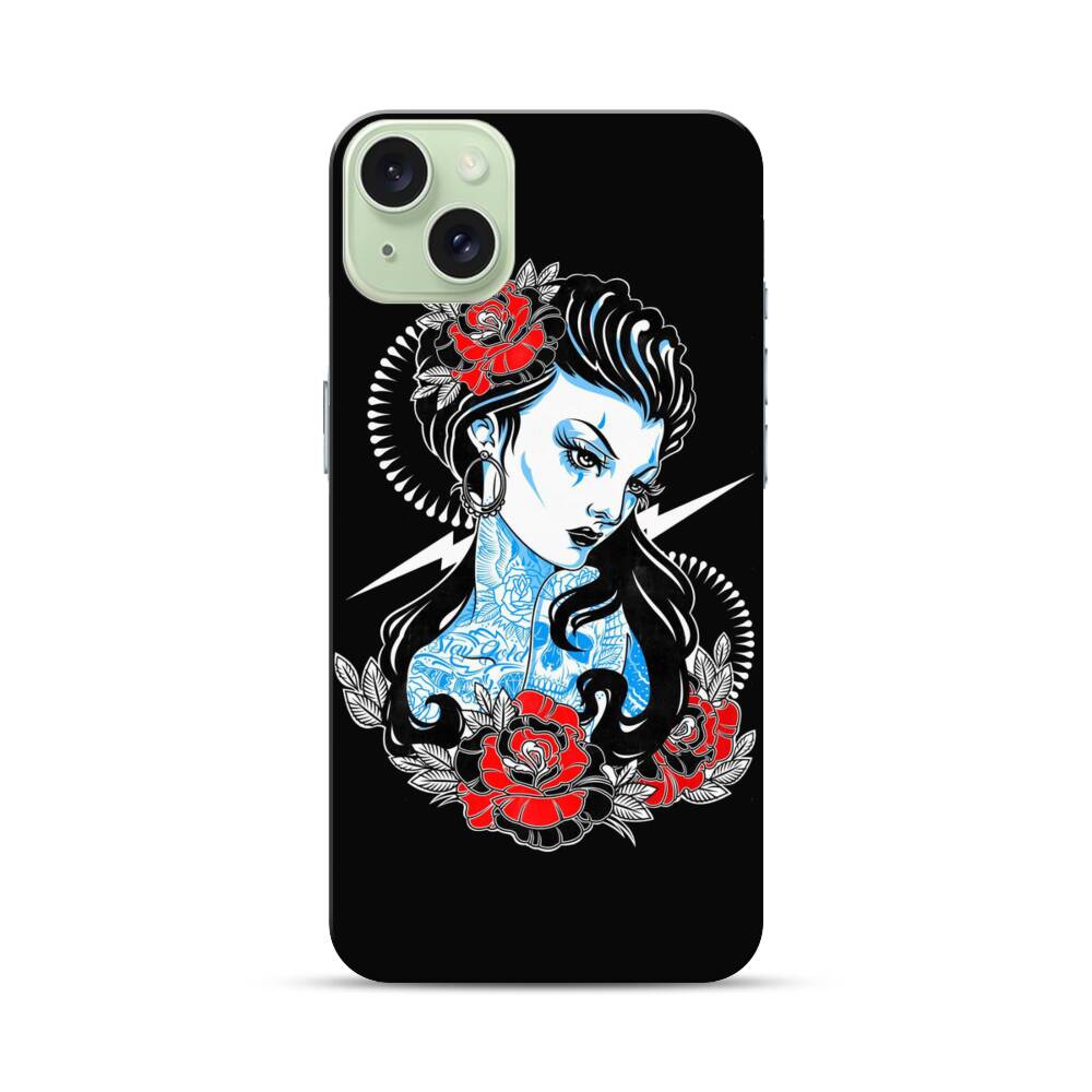 Klassisches Tattoo Mädchen Apple iPhone 15 Plus Hülle● Rundum bedruckbar