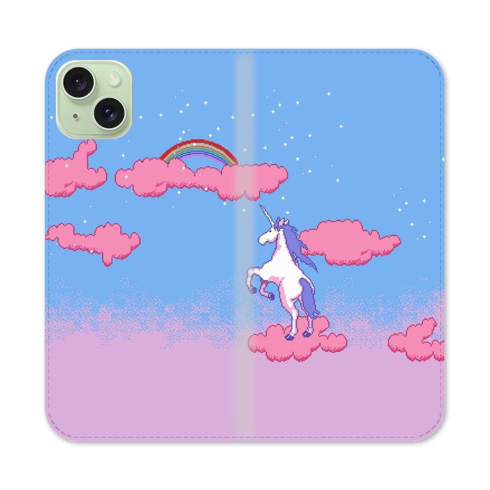 Pixelkunst Einhorn Apple iPhone 15 Plus Flip Case● Seitlich klappbar