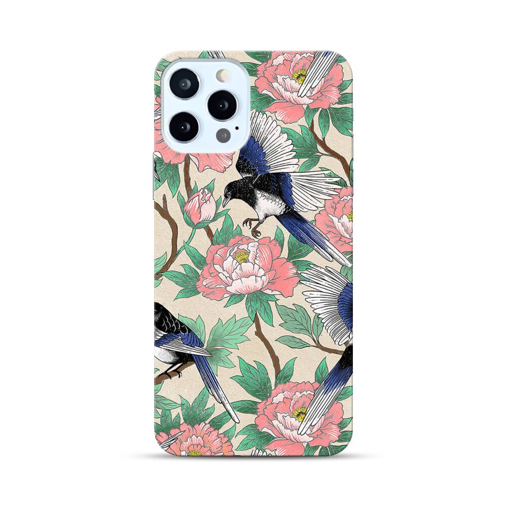 Elstern und Pfingstrosen Apple iPhone 12 Pro Hülle● Rundum bedruckbar