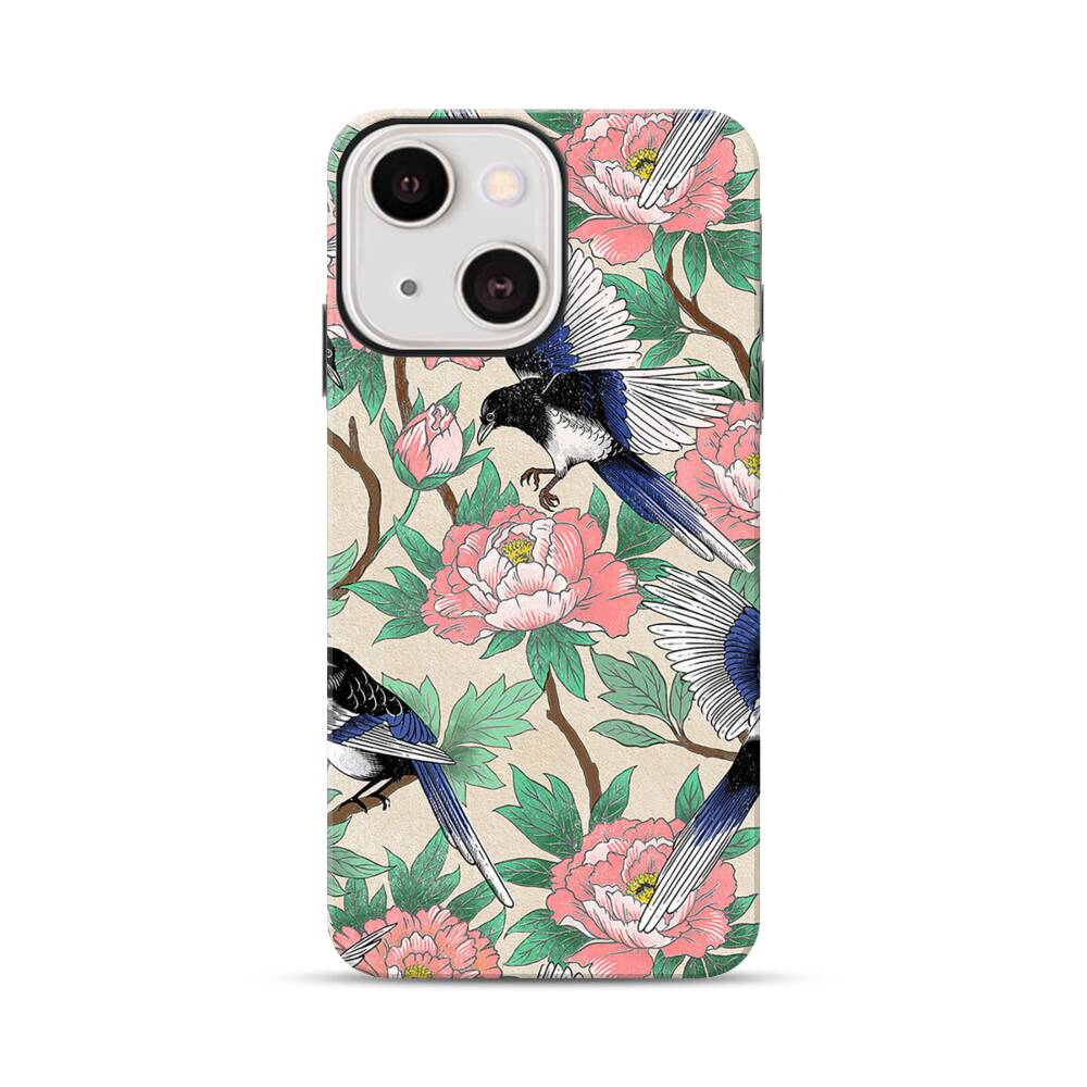 Elstern und Pfingstrosen Apple iPhone 13 Mini Hybrid Case● Rundum bedruckbar