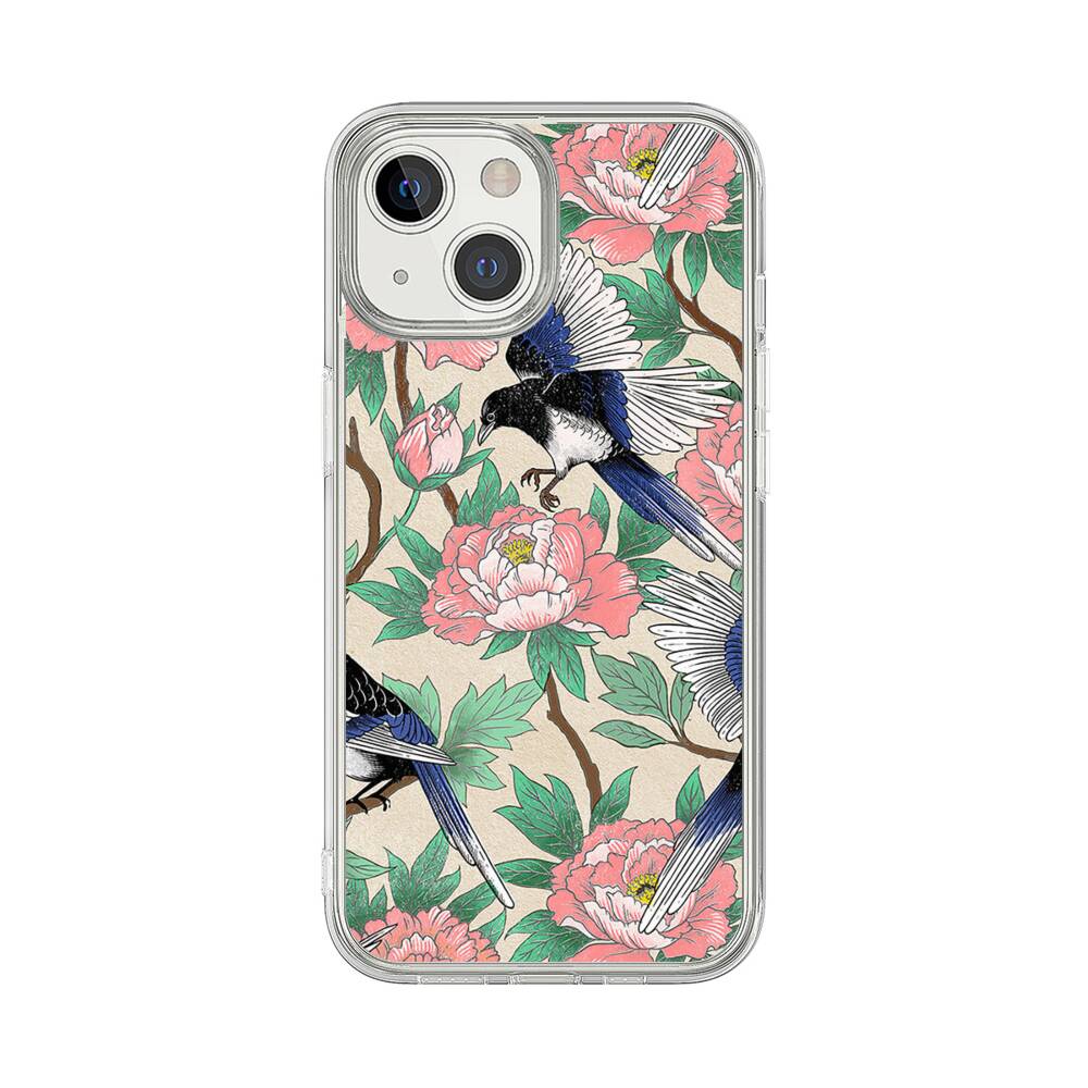 Elstern und Pfingstrosen Apple iPhone 13 Mini Silikon Hülle● Sehr robust & langlebig