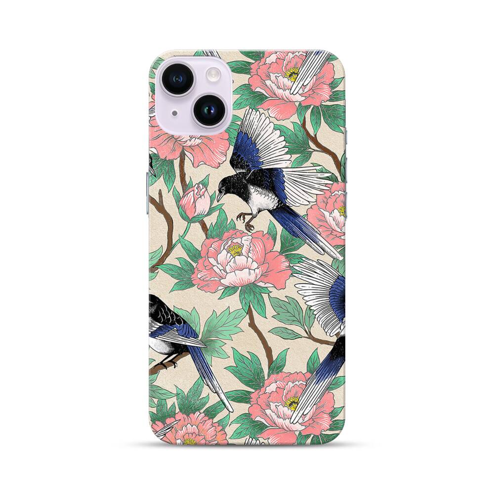Elstern und Pfingstrosen Apple iPhone 14 Plus Hülle● Rundum bedruckbar
