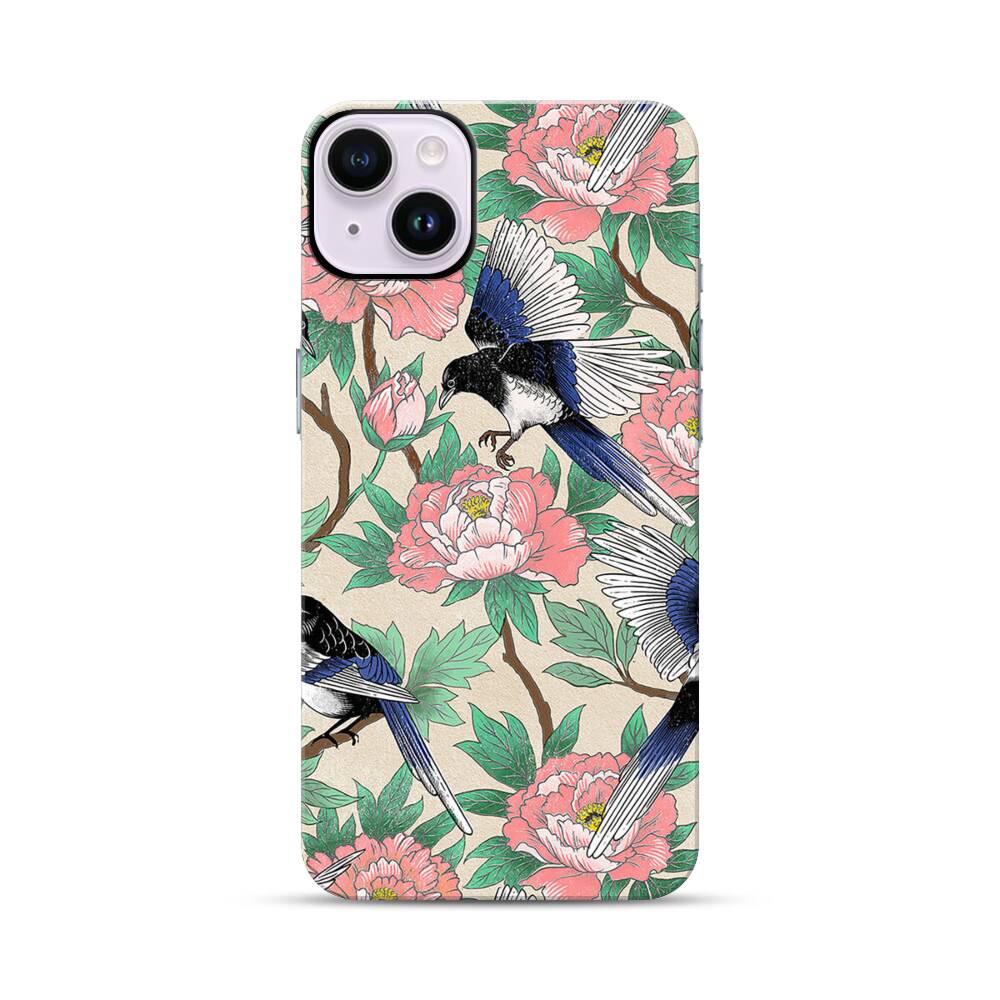 Elstern und Pfingstrosen Apple iPhone 14 Plus Hybrid Case● Rundum bedruckbar