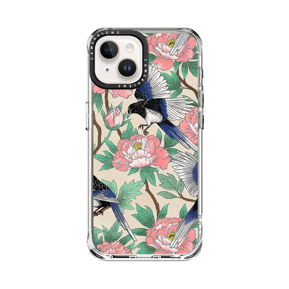 Elstern und Pfingstrosen Apple iPhone 14 Silikon Hülle● Sehr robust & langlebig