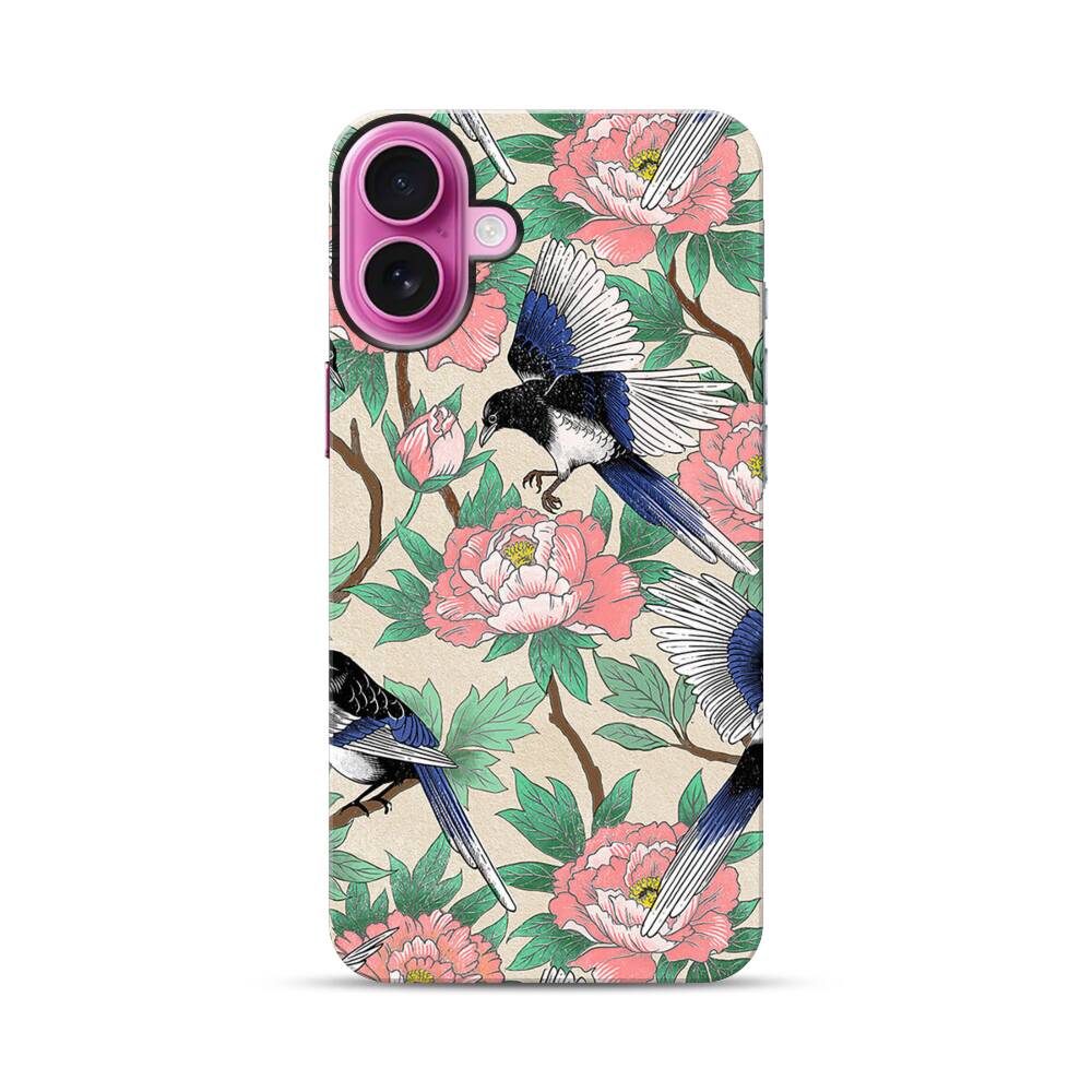 Elstern und Pfingstrosen Apple iPhone 16 Plus Hybrid Case● Rundum bedruckbar