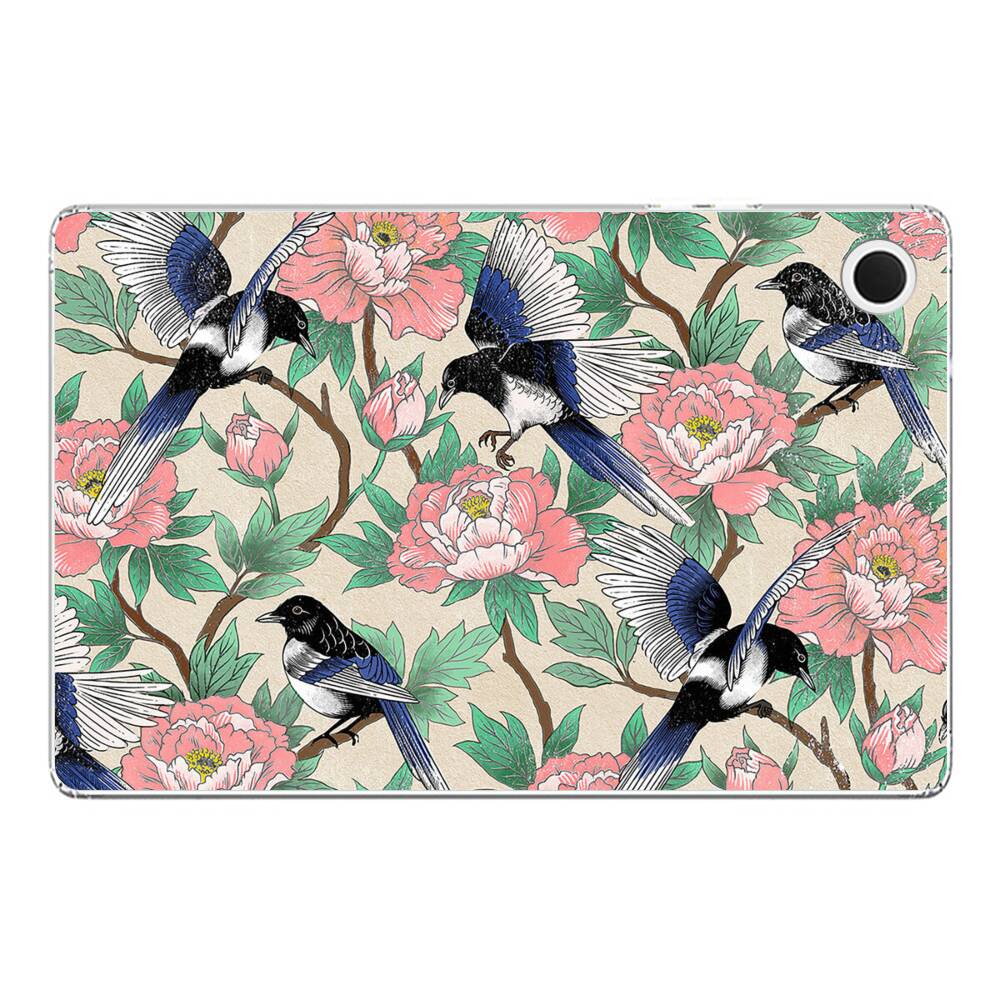 Elstern und Pfingstrosen Samsung Galaxy Tab A8 10.5 (2021) Silikon Hülle● Sehr robust & langlebig