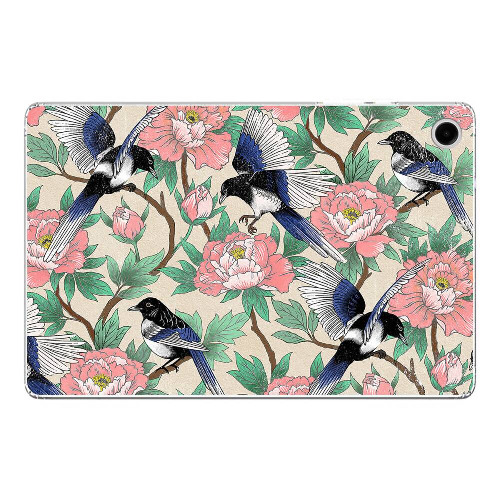 Elstern und Pfingstrosen Samsung Galaxy Tab A9 Plus Silikon Hülle● Sehr robust & langlebig