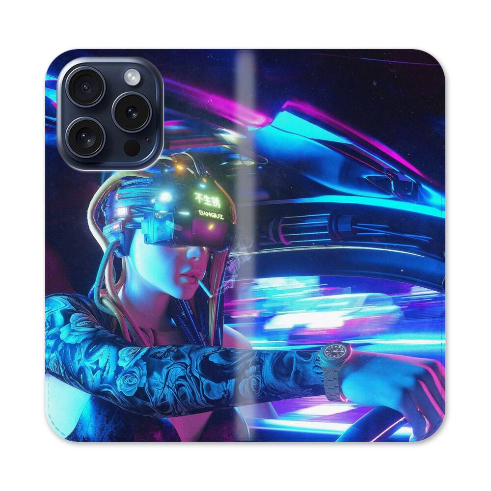 Coole Zukunftsweisende Frau Apple iPhone 15 Pro Flip Case● Seitlich klappbar