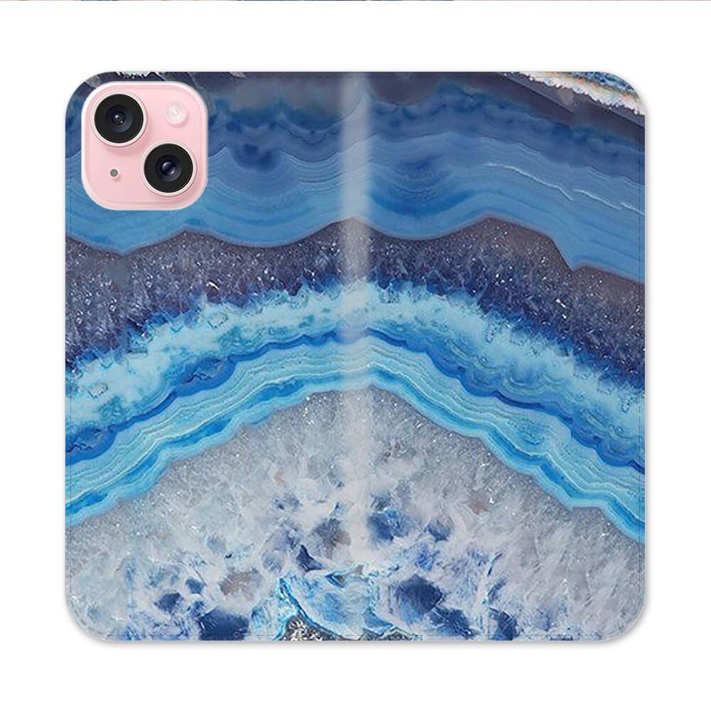 Blaue Spitzen Achatscheibe Apple iPhone 15 Flip Case● Seitlich klappbar