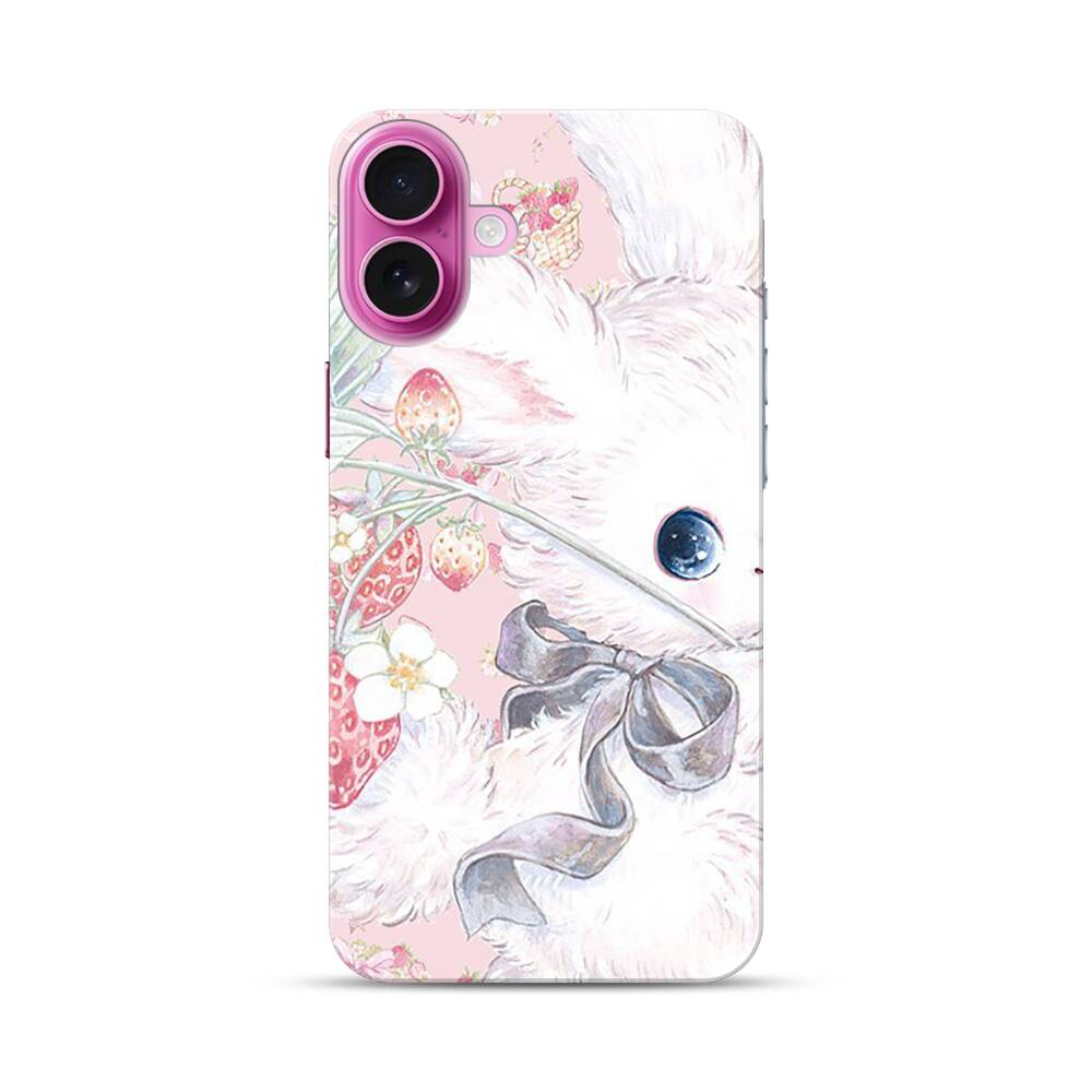 Kawaii Hase mit Erdbeeren Apple iPhone 16 Plus Hülle● Rundum bedruckbar