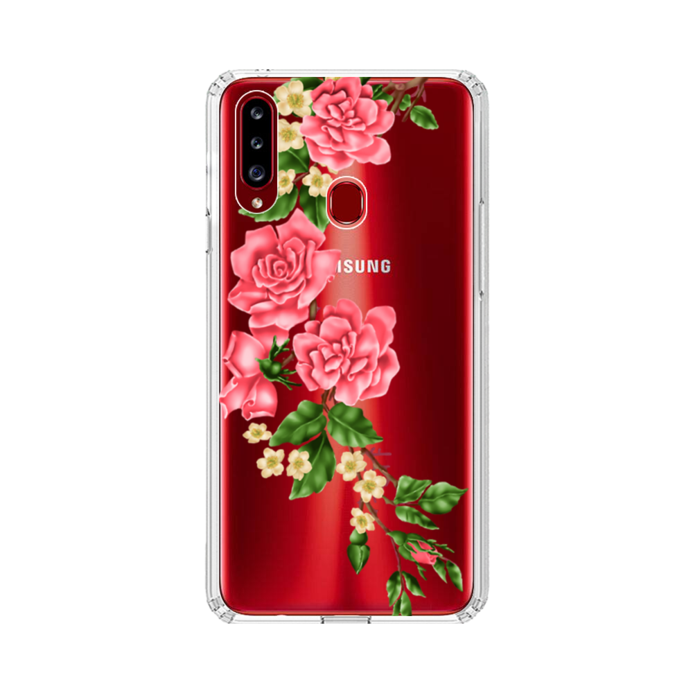 Pinke Blumen Samsung Galaxy A20s Silikon Hülle● Sehr robust & langlebig