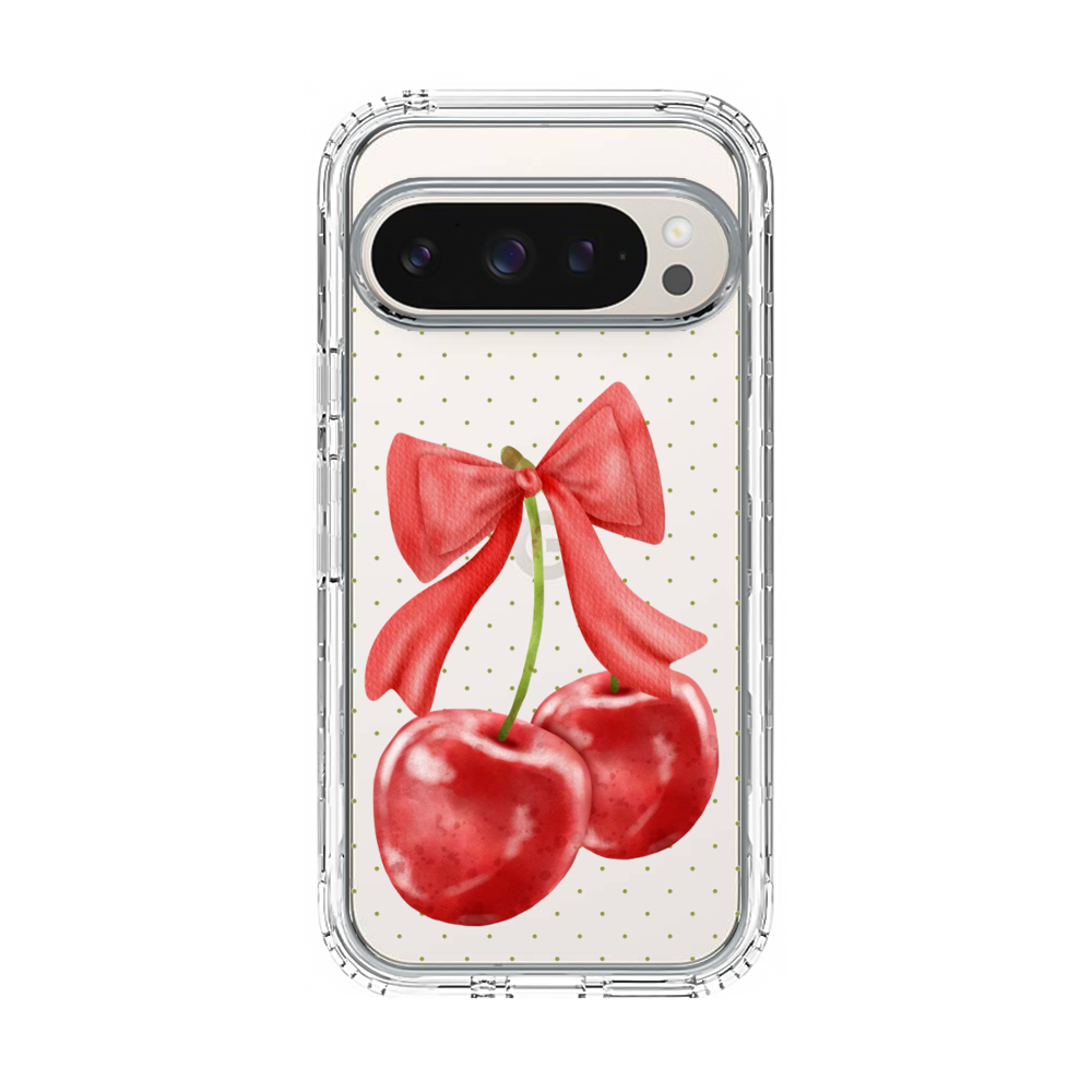 Kirsche mit Schleife Google Pixel 9 Pro Silikon Hülle● Sehr robust & langlebig