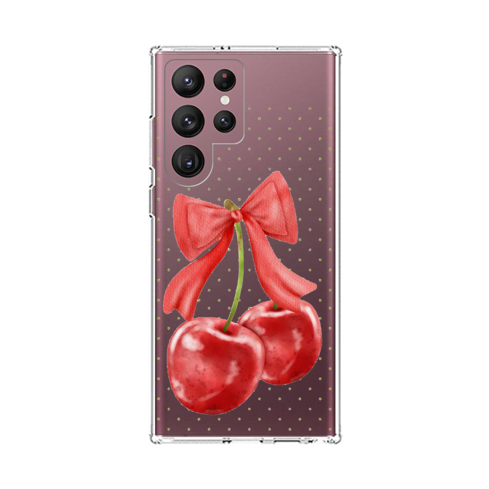Kirsche mit Schleife Samsung Galaxy S22 Ultra Silikon Hülle● Sehr robust & langlebig