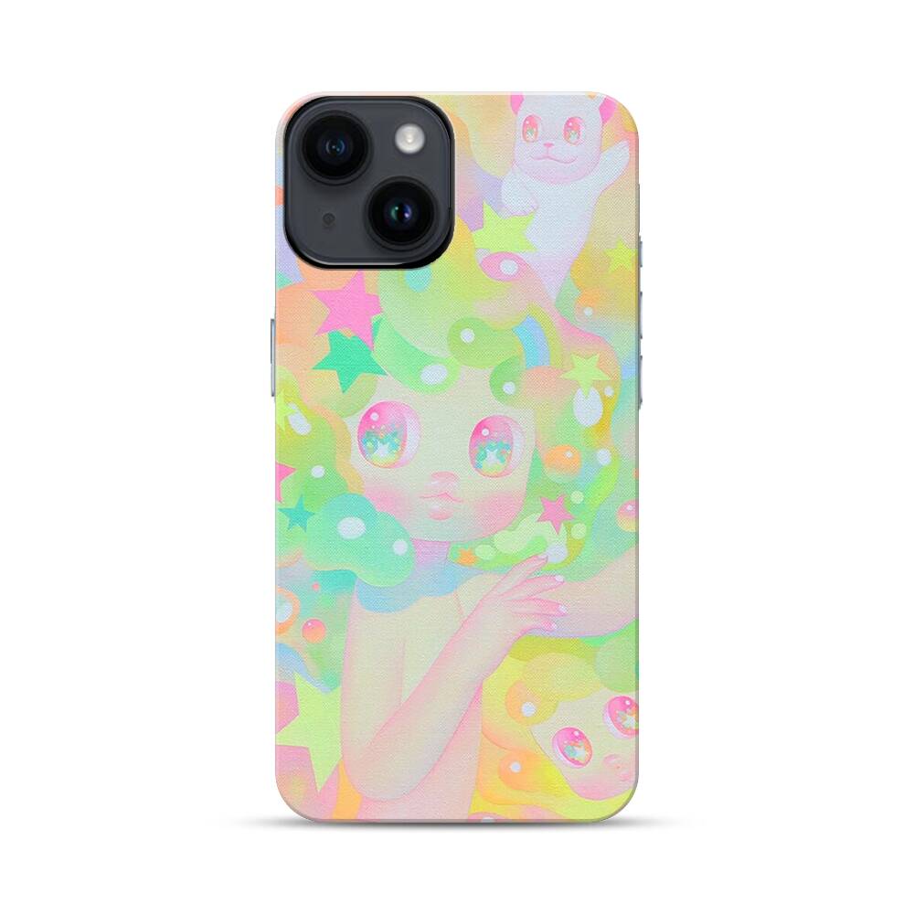 Niedliche Puppen mit Sterne Apple iPhone 14 Hybrid Case● Rundum bedruckbar
