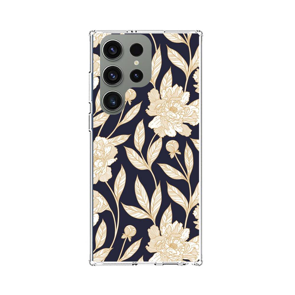Nahtllose goldene Pfingstrosen Samsung Galaxy S23 Ultra Silikon Hülle● Sehr robust & langlebig