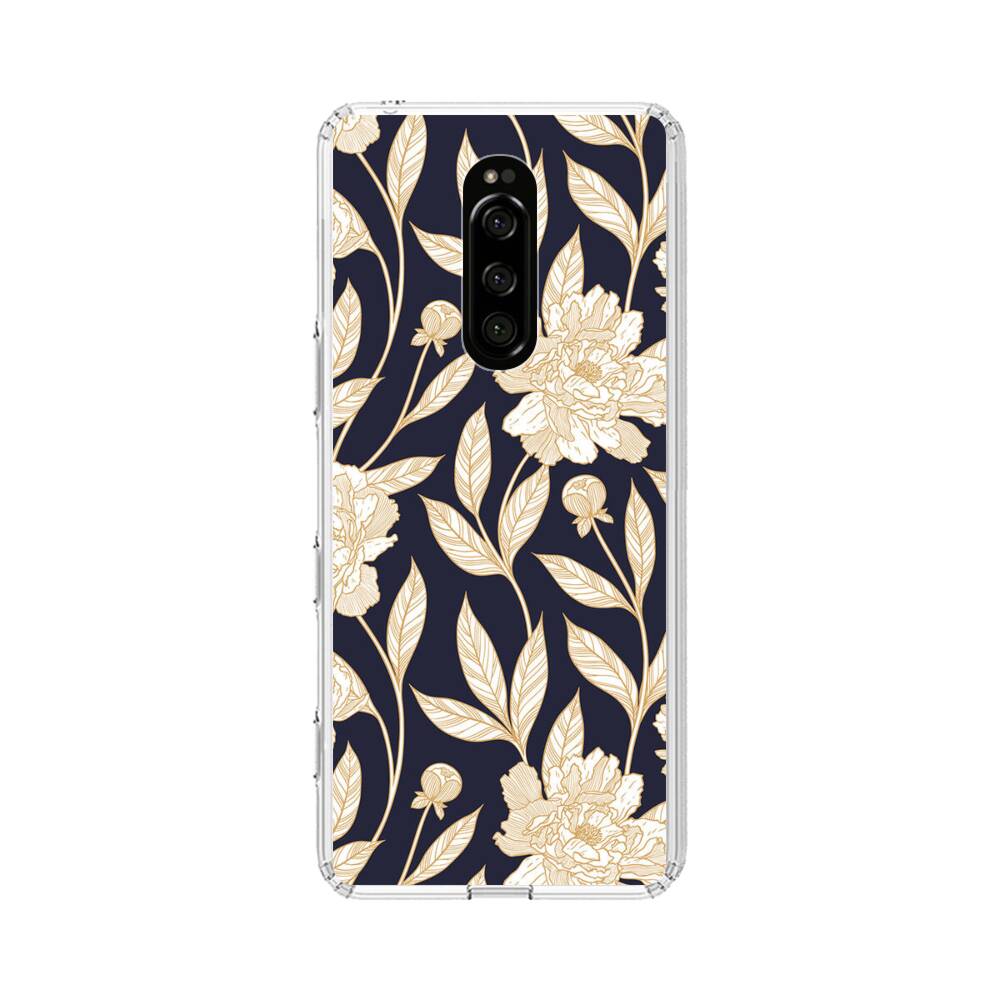 Nahtllose goldene Pfingstrosen Sony Xperia 1 Silikon Hülle● Sehr robust & langlebig