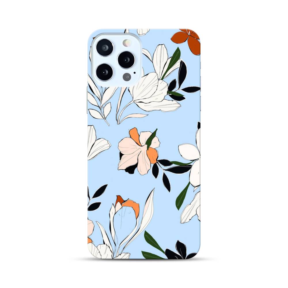Blumen im Babyblau Apple iPhone 12 Pro Max Hülle● Rundum bedruckbar