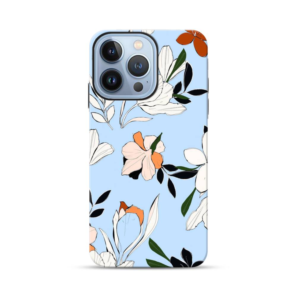 Blumen im Babyblau Apple iPhone 13 Pro Max Hybrid Case● Rundum bedruckbar