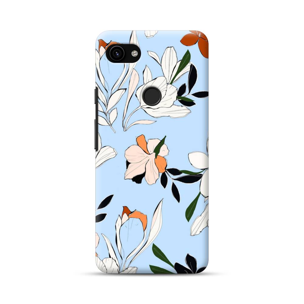 Blumen im Babyblau Google Pixel 3a XL Hülle● Rundum bedruckbar