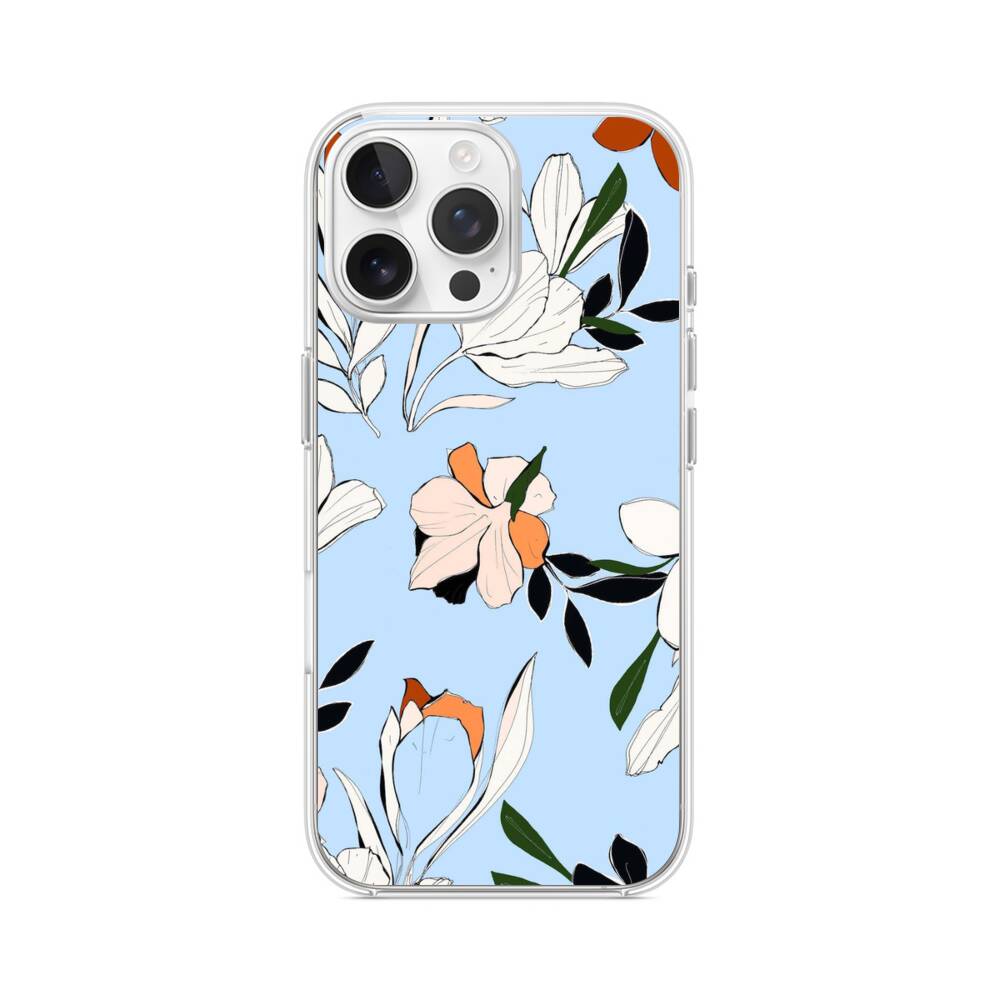 Blumen im Babyblau iPhone 16 Pro Max MagSafe‑kompatible Silikonhülle mit Kamera‑Kickstand● Sehr robust & langlebig