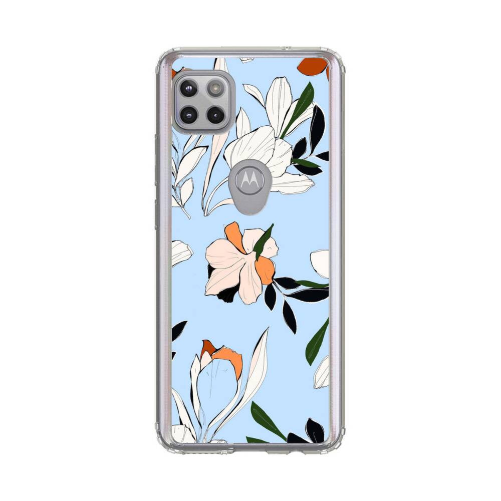 Blumen im Babyblau Motorola One 5G Ace Silikon Hülle● Sehr robust & langlebig