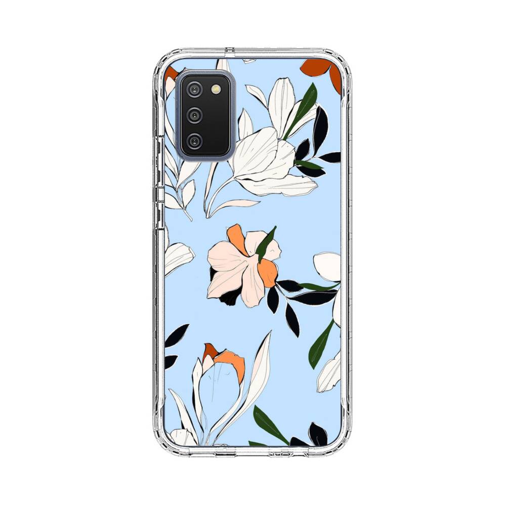 Blumen im Babyblau Samsung Galaxy A02s Silikon Hülle● Sehr robust & langlebig