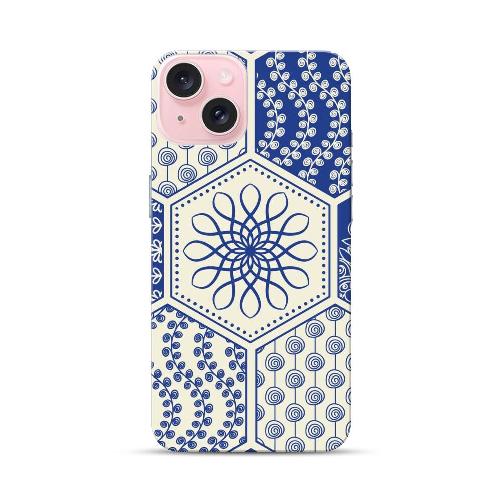 Geometrische Barockmuster Apple iPhone 15 Hülle● Rundum bedruckbar