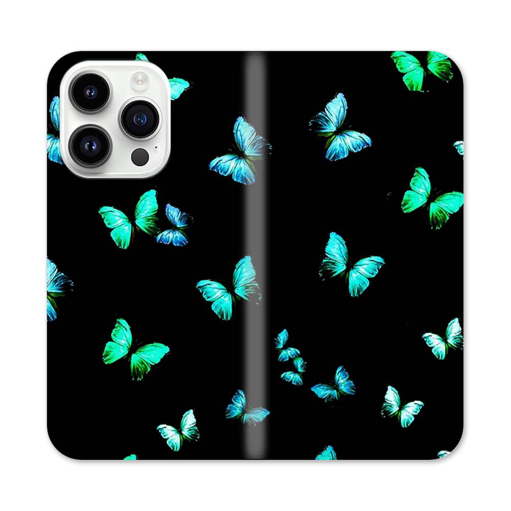 Blauer Schmetterling Apple iPhone 14 Pro Flip Case● Seitlich klappbar