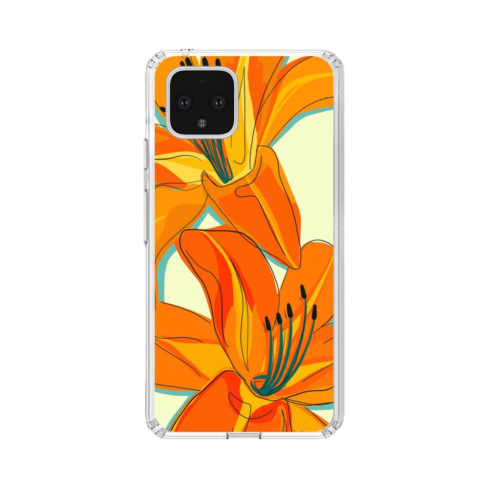 Orange Lilien Google Pixel 4 Silikon Hülle● Sehr robust & langlebig