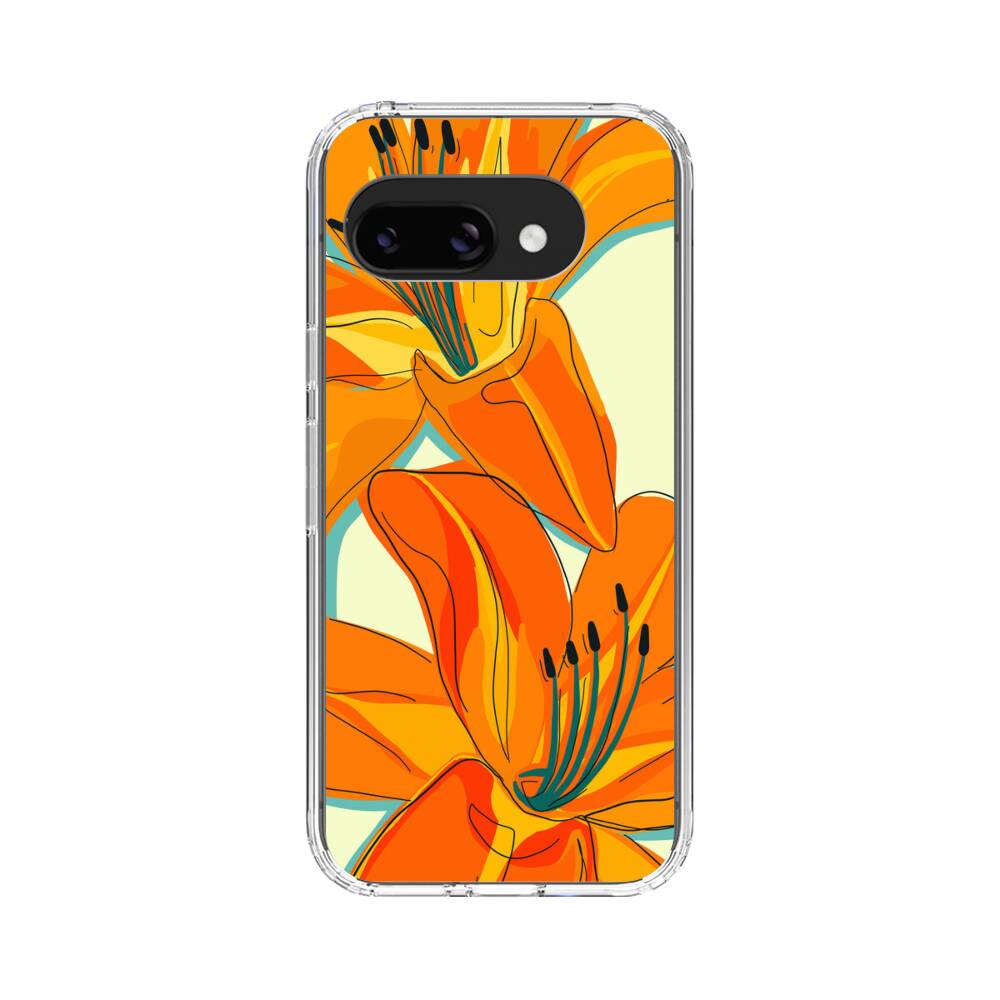 Orange Lilien Google Pixel 9a Silikon Hülle● Sehr robust & langlebig