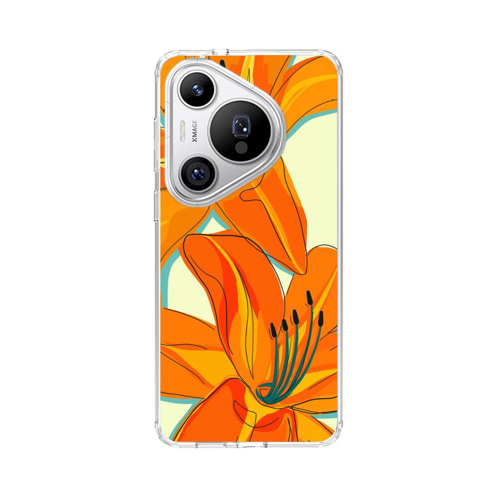 Orange Lilien Huawei Pura 70 Pro Plus Silikon Hülle● Sehr robust & langlebig