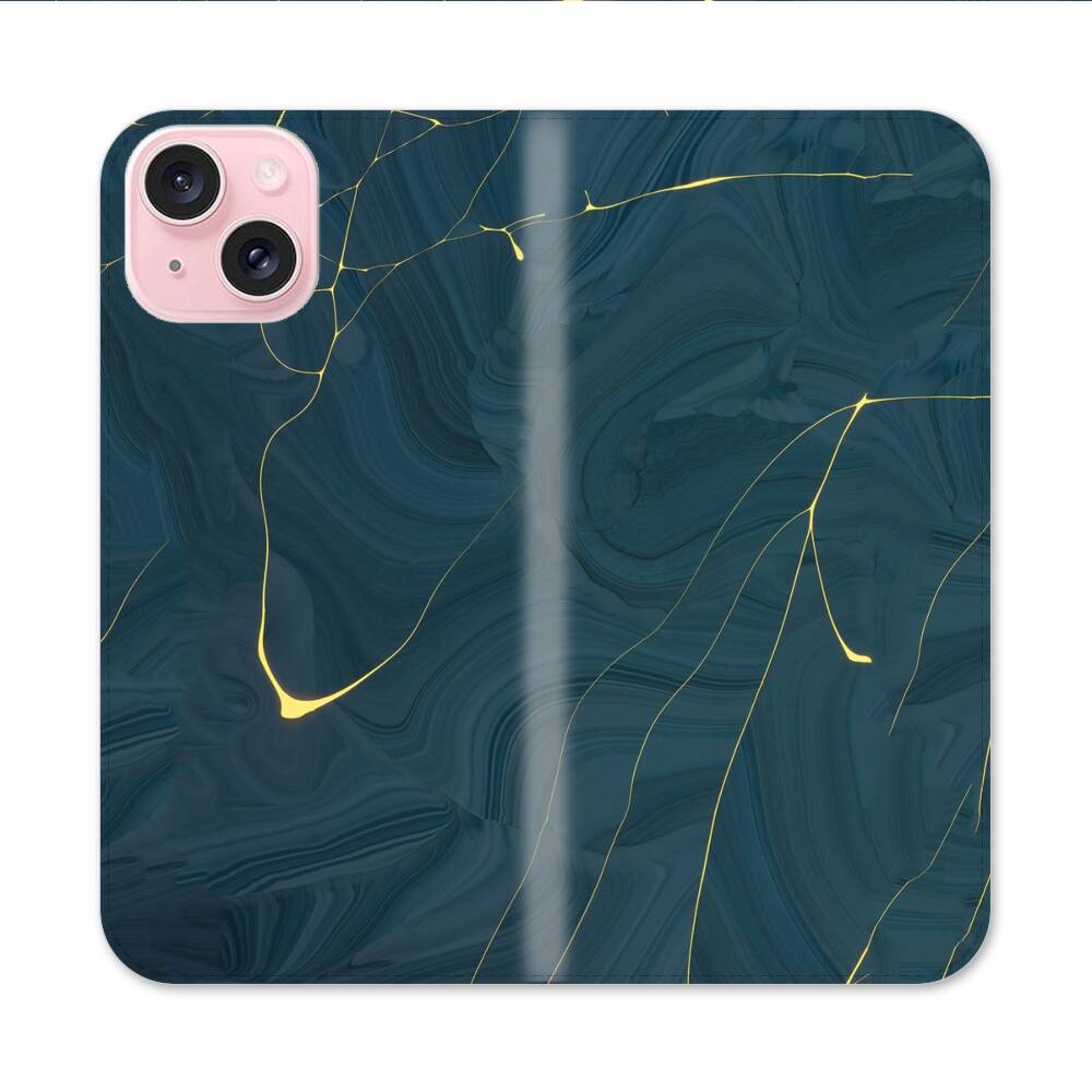 Grüner Steinmarmor Apple iPhone 15 Flip Case● Seitlich klappbar
