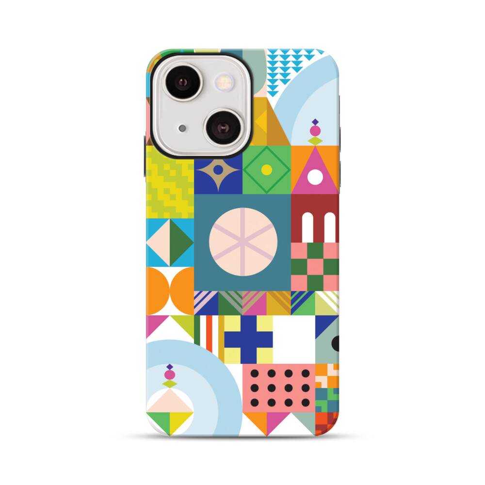 Bunte Verschiedene Geometrische Formen Apple iPhone 13 Mini Hybrid Case● Rundum bedruckbar