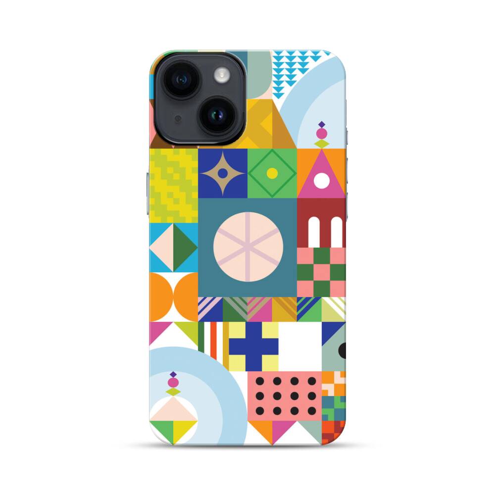 Bunte Verschiedene Geometrische Formen Apple iPhone 14 Hybrid Case● Rundum bedruckbar