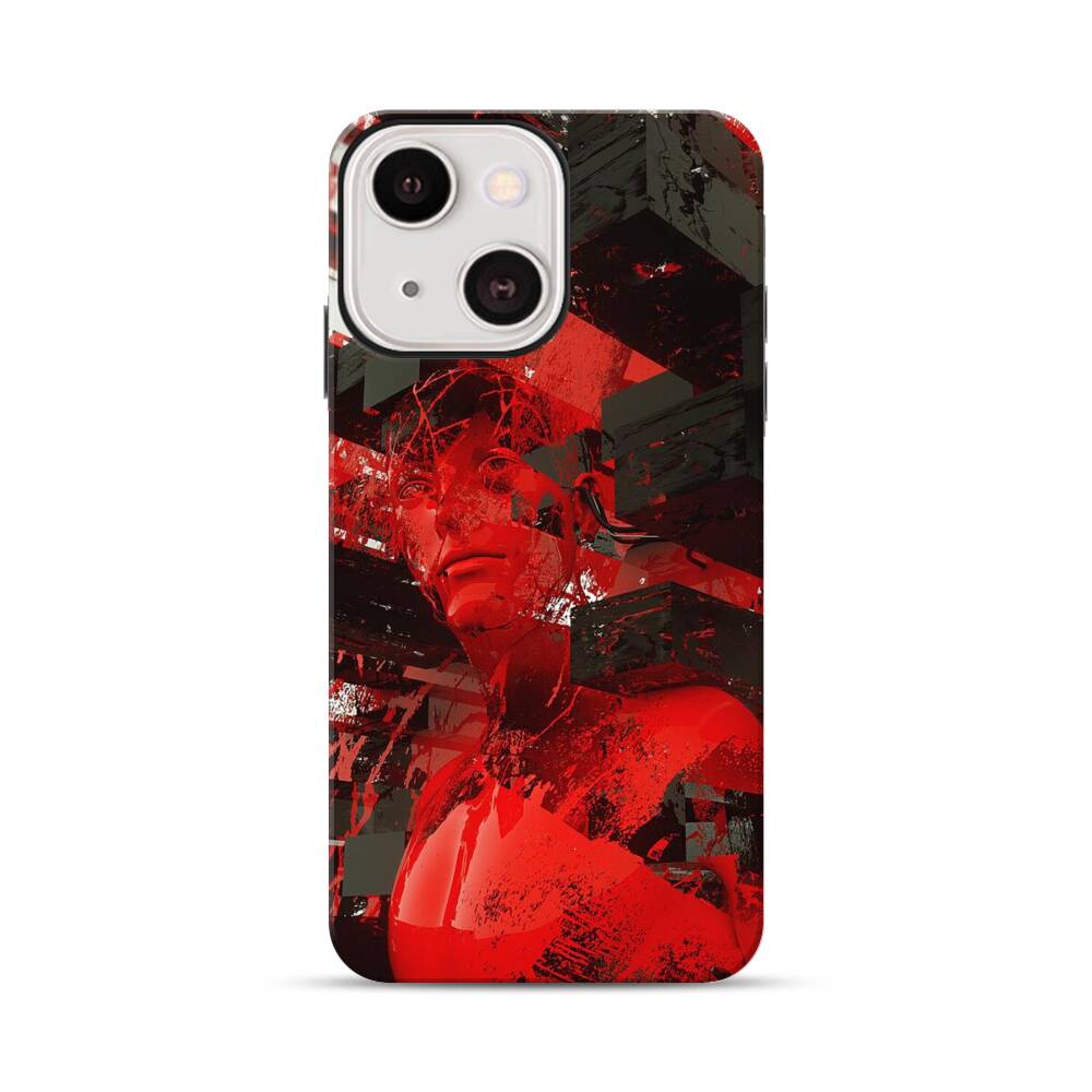 Rote Statue in einer Gebäudecluster Apple iPhone 13 Mini Hybrid Case● Rundum bedruckbar
