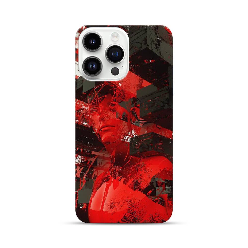 Rote Statue in einer Gebäudecluster Apple iPhone 14 Pro Max Hülle● Rundum bedruckbar