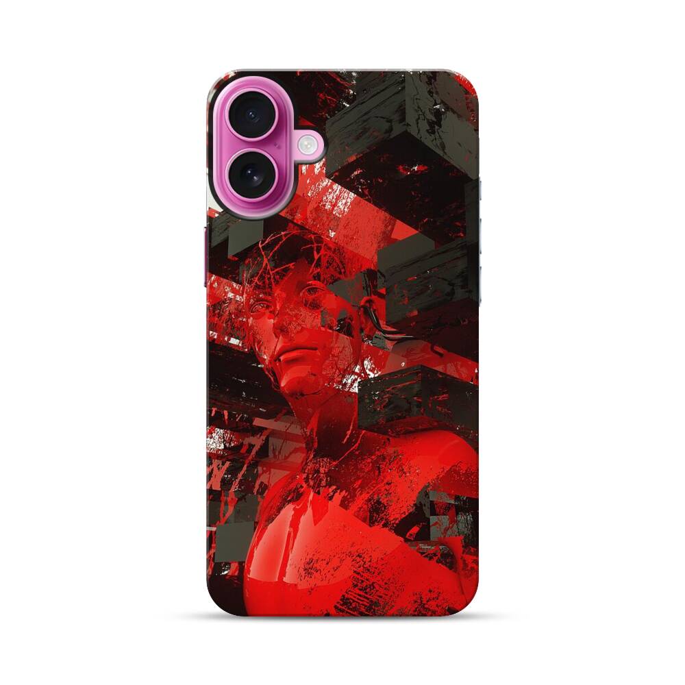 Rote Statue in einer Gebäudecluster Apple iPhone 16 Plus Hybrid Case● Rundum bedruckbar