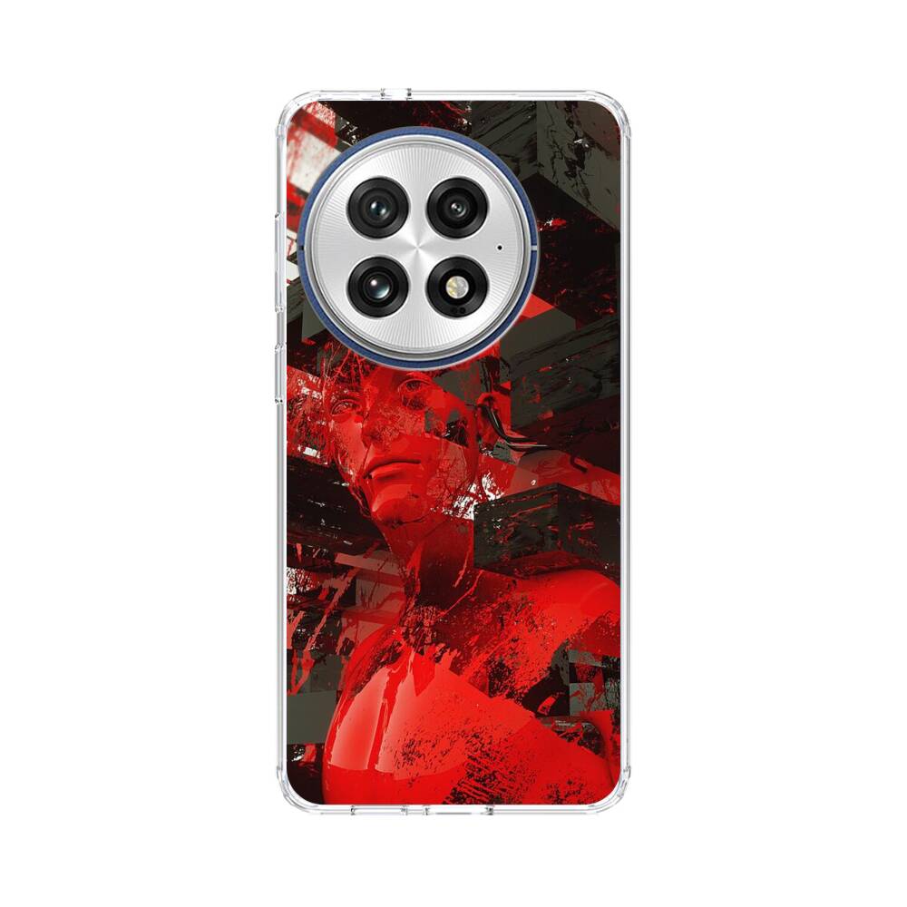 Rote Statue in einer Gebäudecluster OnePlus 13 Silikon Hülle● Sehr robust & langlebig