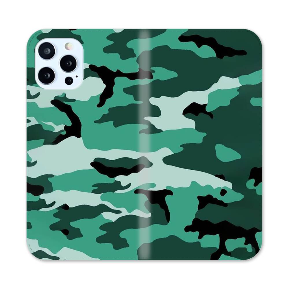 Blaue Tarnung Apple iPhone 12 Pro Flip Case● Seitlich klappbar